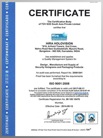 ISO 9001:2008 Certified by TUV-SUD, Germany