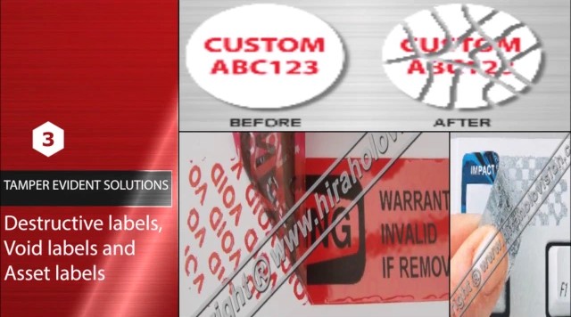 These labels are made from high-quality materials such as polyester, vinyl, and specialized tamper-evident adhesives to ensure strength and longevity.